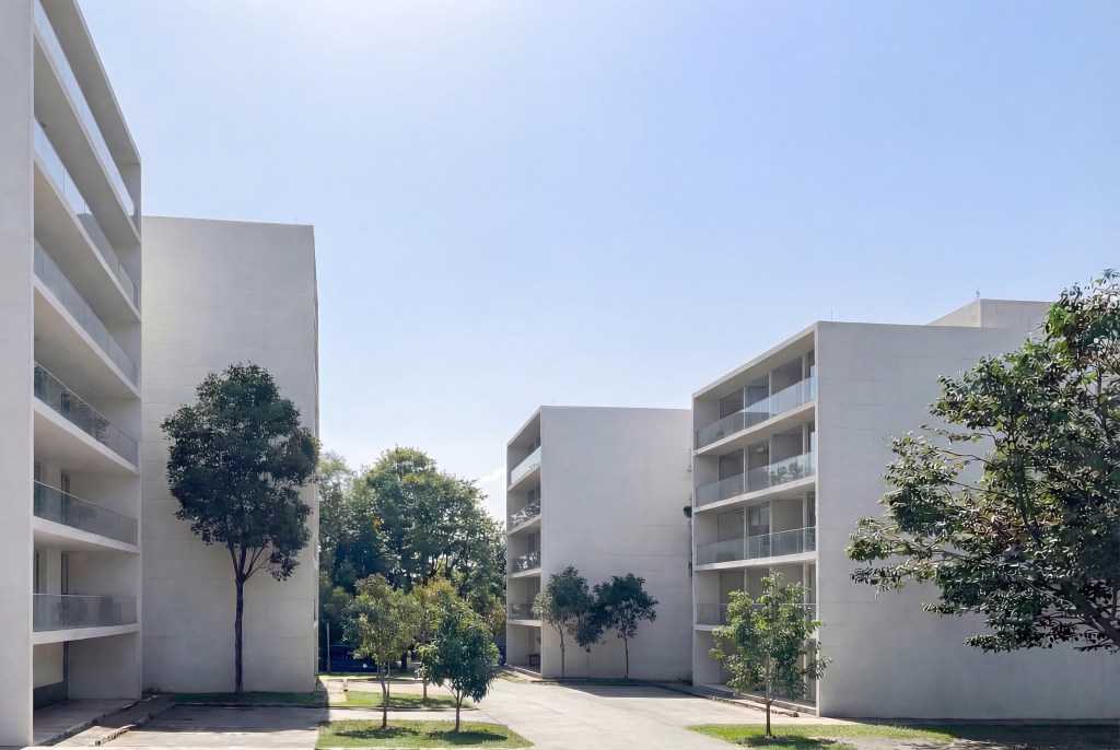 El conjunto incluye zonas comunes como piscina, jardines, huertos, gimnasio y espacios polivalentes, fomentando la convivencia y una vida de comunidad activa.