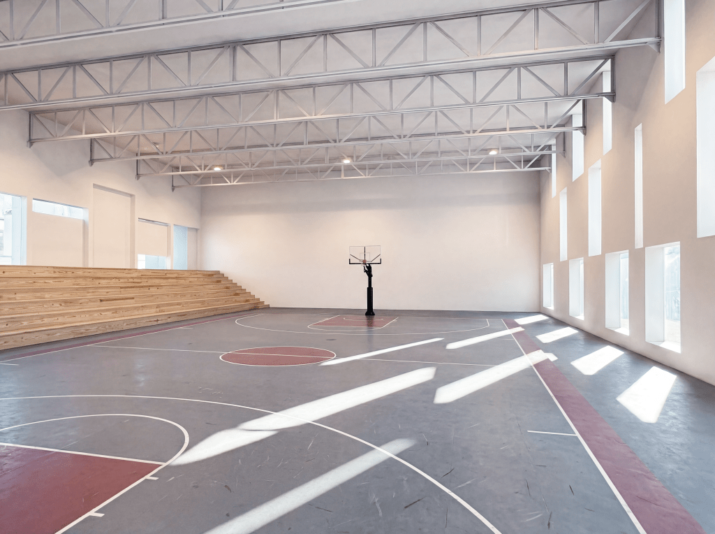La envolvente, resuelta con un lenguaje contemporáneo y limpio, se perfora mediante huecos verticales profundos que regulan la entrada de luz natural, generan un ritmo constante en fachada y establecen una relación directa entre interior y exterior. Esta estrategia permite iluminar homogéneamente la pista, reduciendo el consumo energético y mejorando el confort visual durante el uso deportivo.