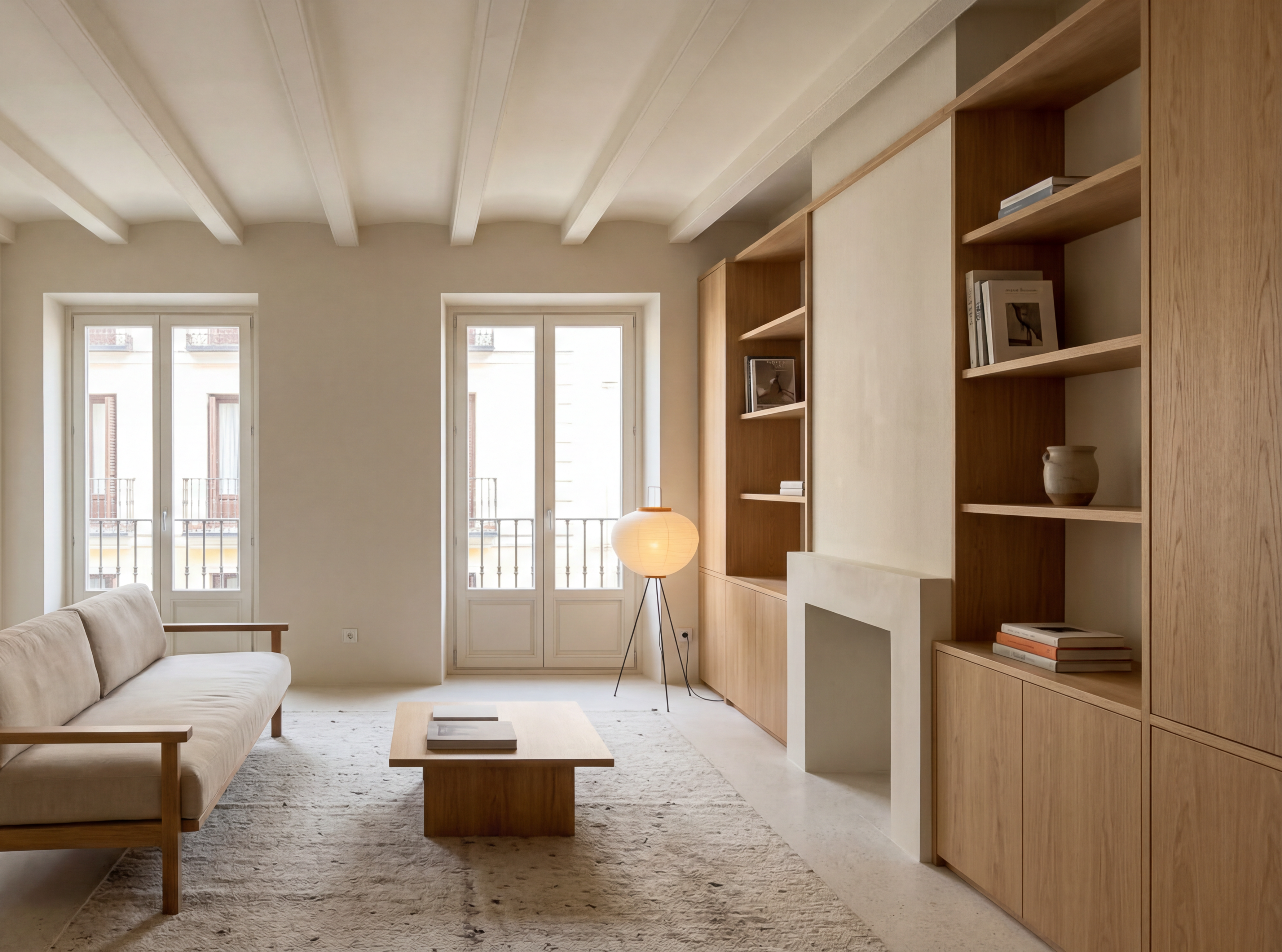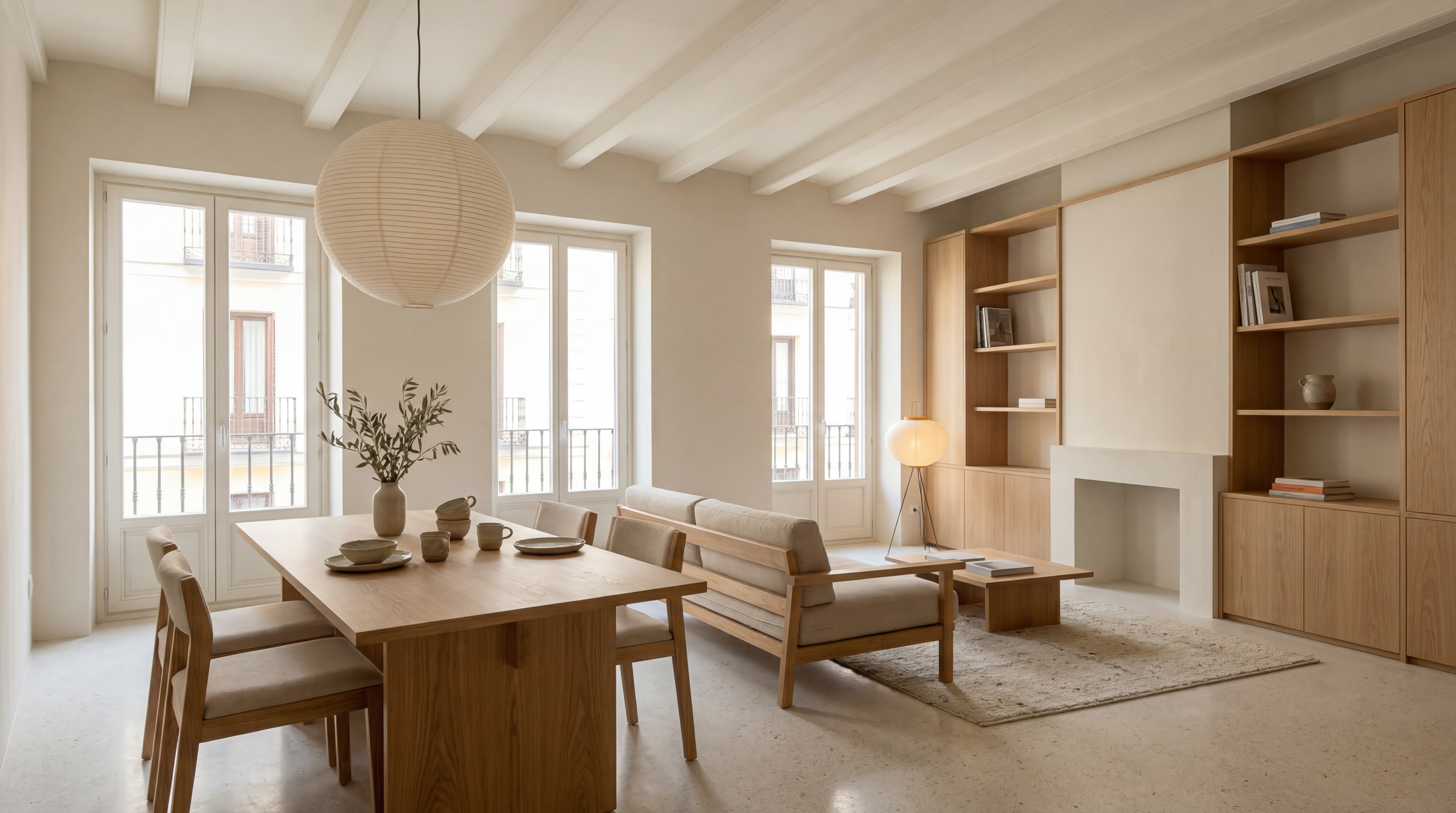 La intervención busca un equilibrio entre lo doméstico y lo arquitectónico, donde cada elemento —desde el mobiliario hasta la iluminación— se integra en una atmósfera serena, luminosa y coherente con el contexto residencial del edificio.