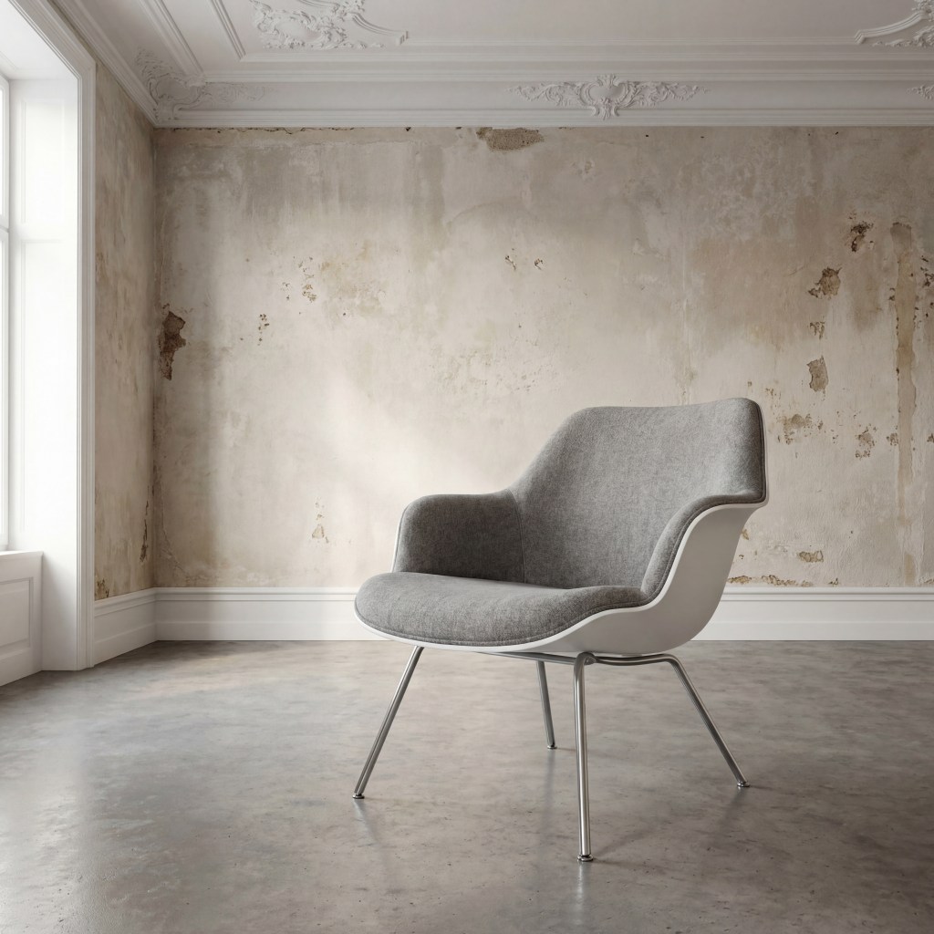 La pieza WBOD se articula mediante una dicotomía visual entre su envolvente rígida y un núcleo ergonómico de gran suavidad. El diseño apuesta por una carcasa blanca que funciona como un exoesqueleto continuo, proporcionando una estructura geométrica definida que abraza y protege el tapizado gris de su interior.